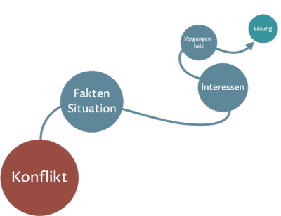 Sie betrachtet sachlich die Fakten, arbeitet die Interessen der Konfliktparteien heraus und überprüft, ob Kränkungen und Verletzungen aus der Vergangenheit heute noch eine Rolle spielen.
